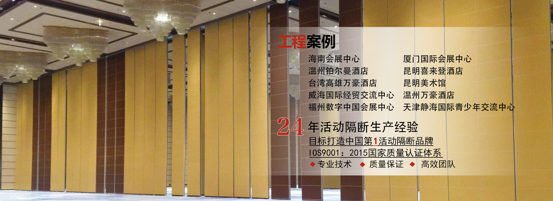 廣東一固隔斷制品有限公司成立于1998年,國(guó)家高新技術(shù)企業(yè),位于中國(guó)佛山市南海區(qū)里水鎮(zhèn),是一家專(zhuān)業(yè)從事活動(dòng)隔斷和辦公室玻璃隔斷系統(tǒng)開(kāi)發(fā),銷(xiāo)售,生產(chǎn)和售后服務(wù)的一站式生產(chǎn)廠商。公司產(chǎn)品廣泛應(yīng)用于星級(jí)飯店,寫(xiě)字樓,餐廳,宴會(huì)廳,會(huì)議中心或會(huì)展中心等商業(yè)場(chǎng)合,提供便捷有效的空間管理解決方案。最高門(mén)板高度可達(dá)20米,最大隔音系數(shù)可達(dá)56分貝。 一固公司擁有兩個(gè)現(xiàn)代化的生產(chǎn)基地,占地超過(guò)10,000平方米,...